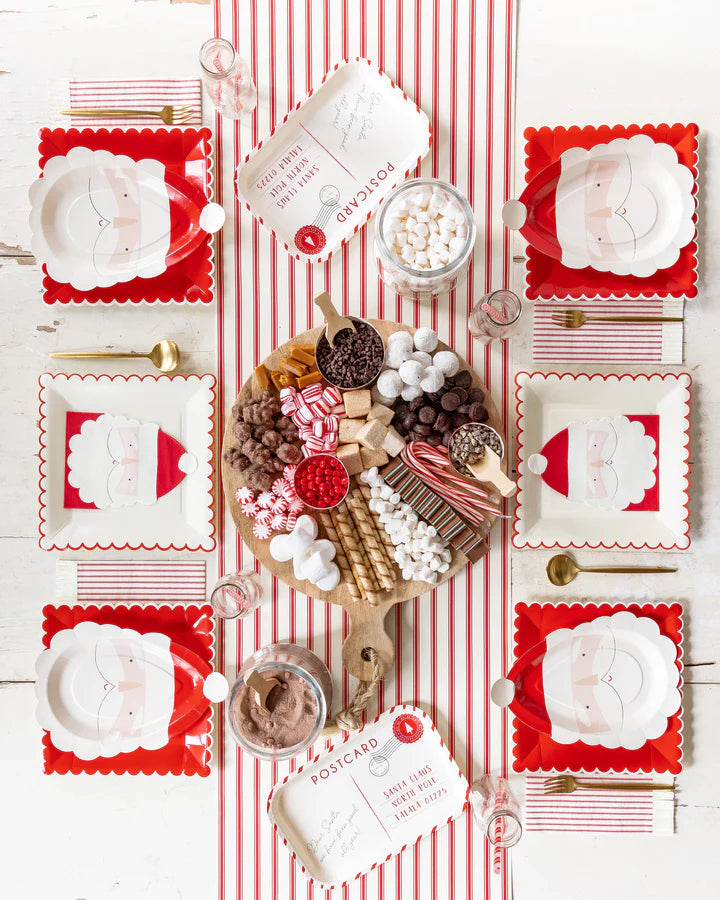 Set a merry table this holiday season with these red trimmed scalloped dinner plates. The classic red plate with winter white scalloped edge pulls together any Christmas party theme and sets an elegant backdrop for your festive tablescape.