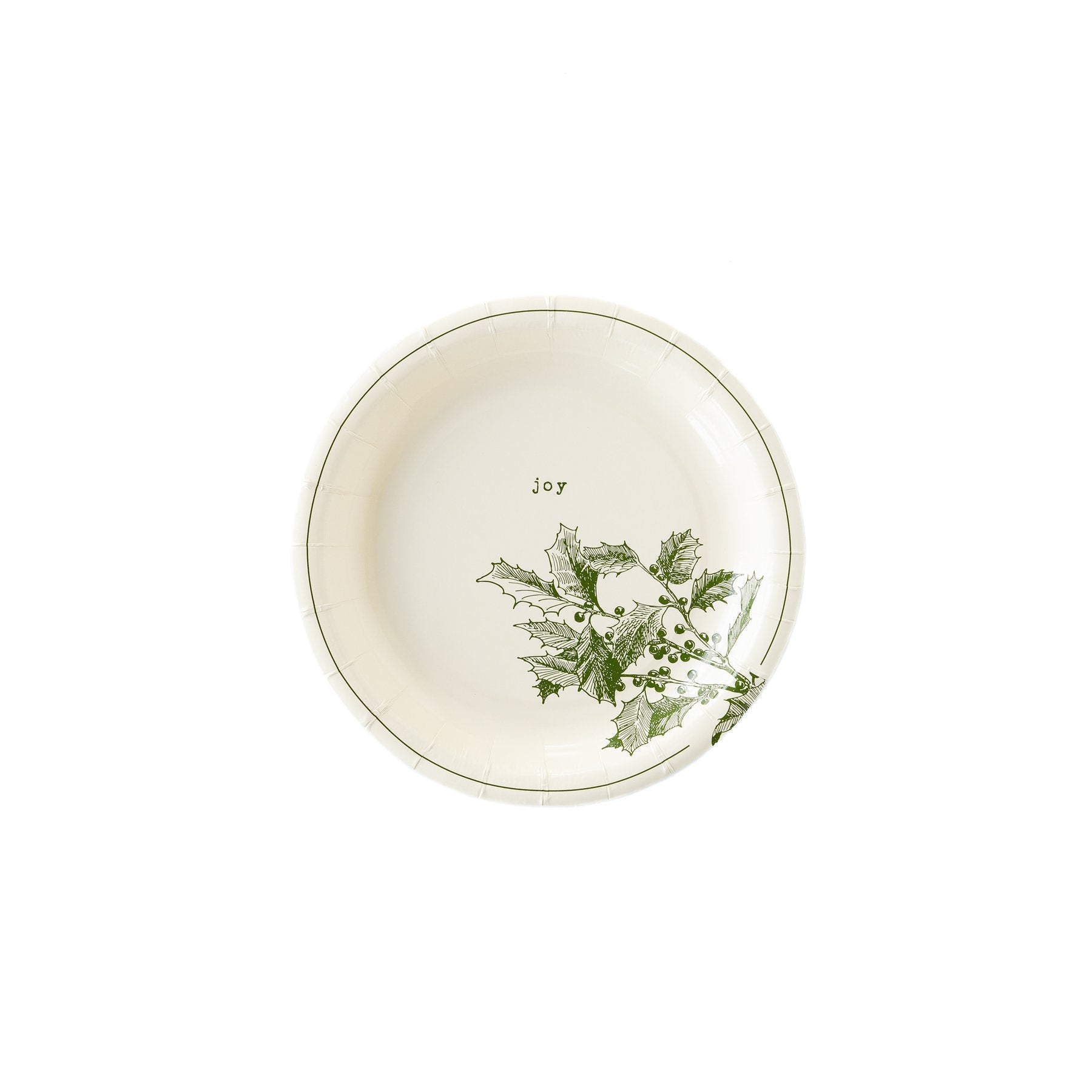 Classic design with traditional Christmas flair, this set of green vignette plates are the perfect addition to your Holiday table. With elegant Christmas botanicals adorned with holiday wording, this plate set feature 4 distinct designs. Pair these festive plates with our fringe dinner napkins and green plaid scalloped plates for a cheerful Christmas tablescape.