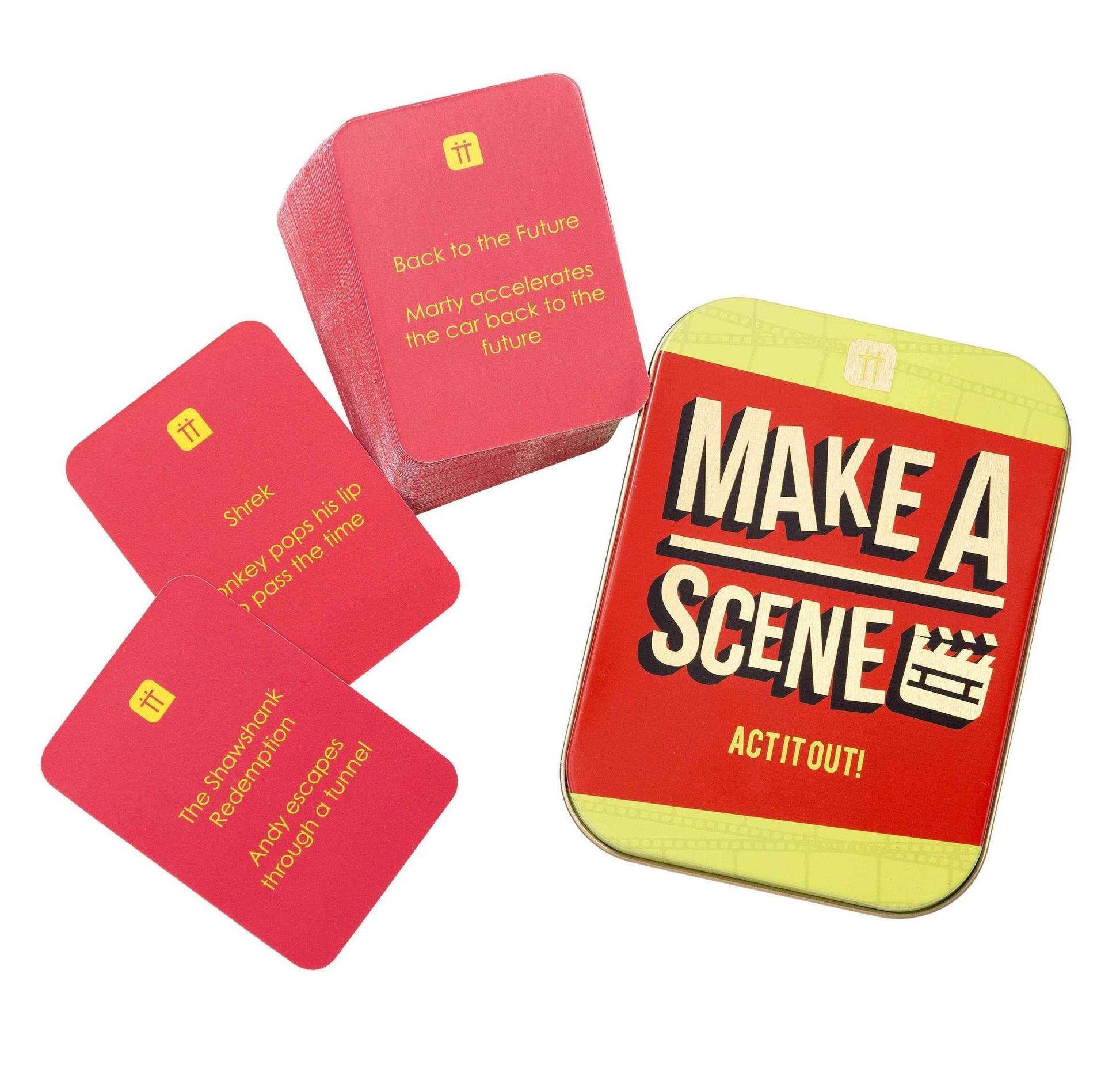 Make a Scene with this game in a tin containing 130 charades on 65 cards. Re-enact these iconic movie scenes and put your cinematic knowledge to the test. Perfect to play with family or friends and is sure to get everyone laughing!