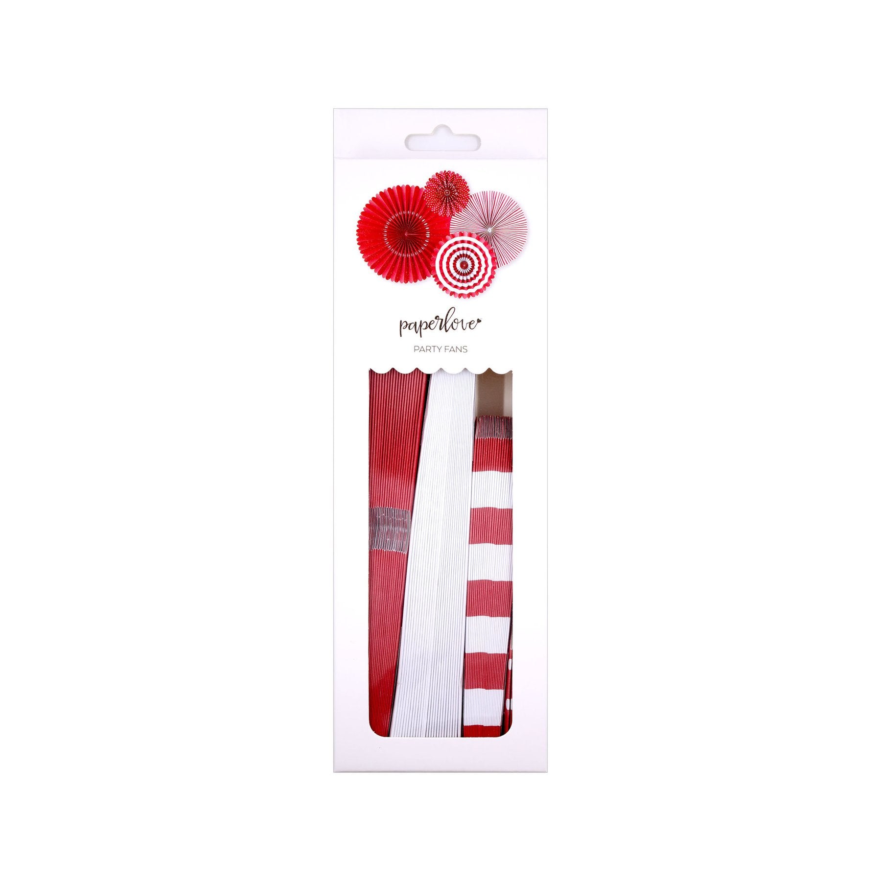 These black onyx and white paper fans create a festive back drop to any event. Each package includes 4 party fans: 1-15 inch fan, 1-12 inch fan, 1-10 inch fan, and 1-7 inch fan.