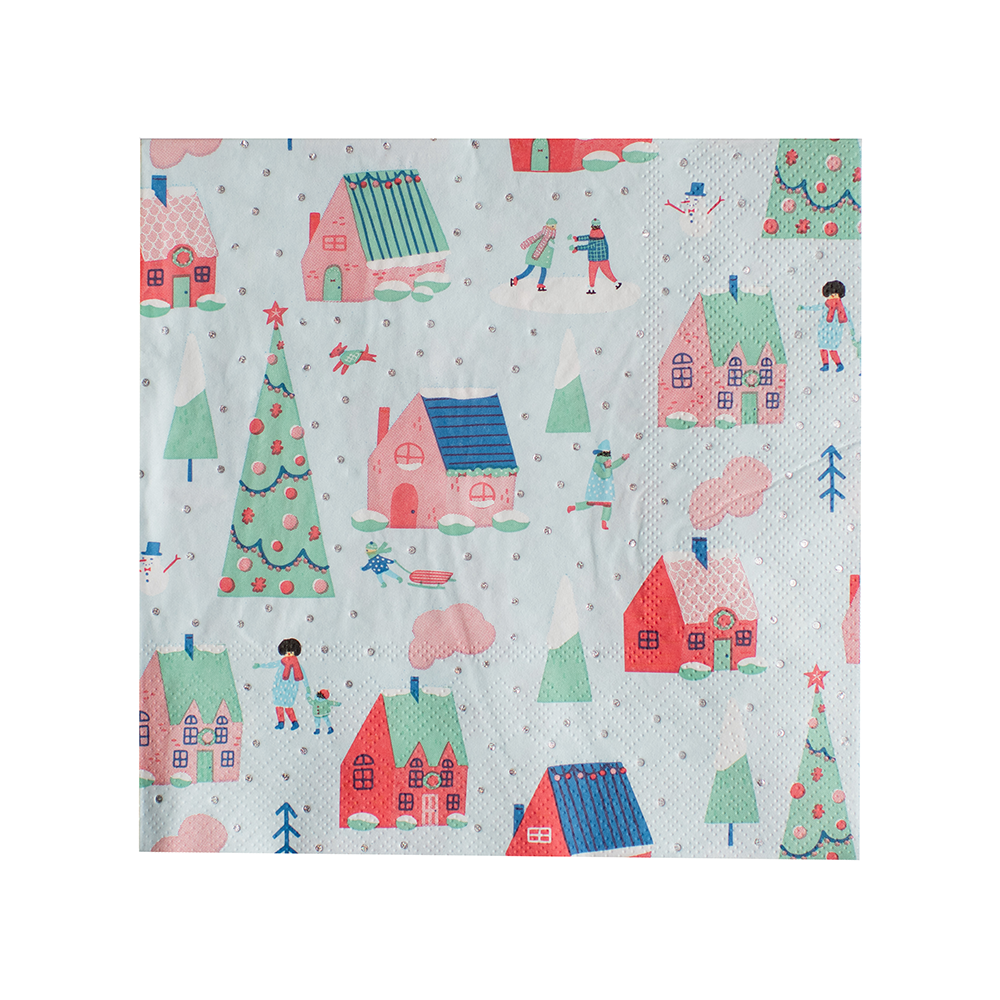 Let it snow! Featuring a range of wintery colors and shimmering holographic glitter foil, these snow day large napkins are sure to bring all the winter magic! Illustrated by Hello!Lucky.