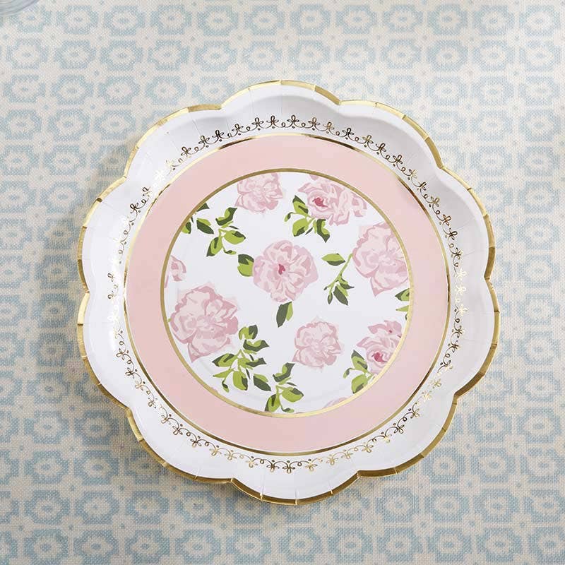 Tea Time Whimsy Large Paper Plates in Pink (8 pk)