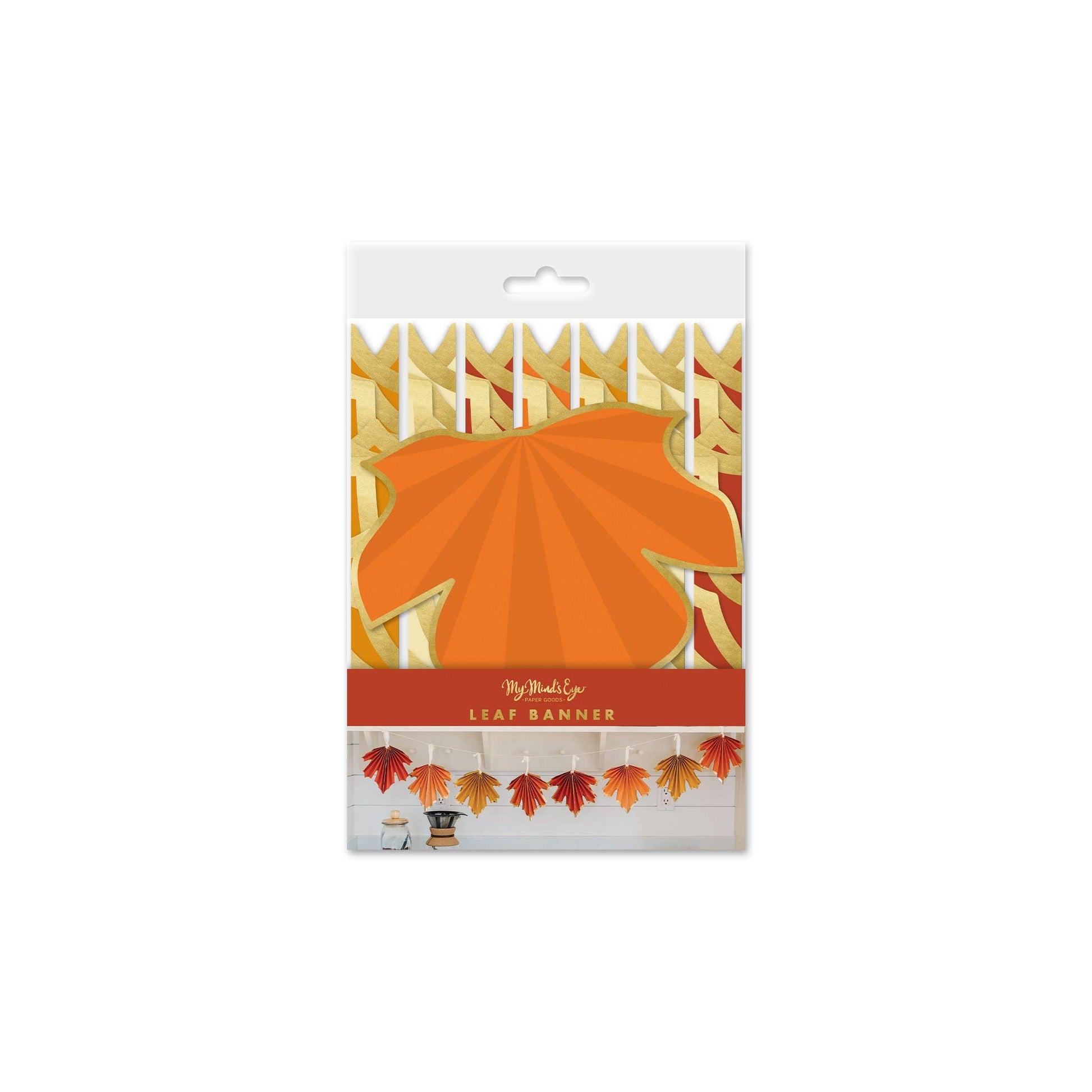 Fall into autumn with this leaf fan banner. Edged in gold foil, each leaf comes with a satin ribbon loop so they can be hung either individually or together as a banner. These leaves make a stunning backdrop for Thanksgiving dinner and your fall decor.