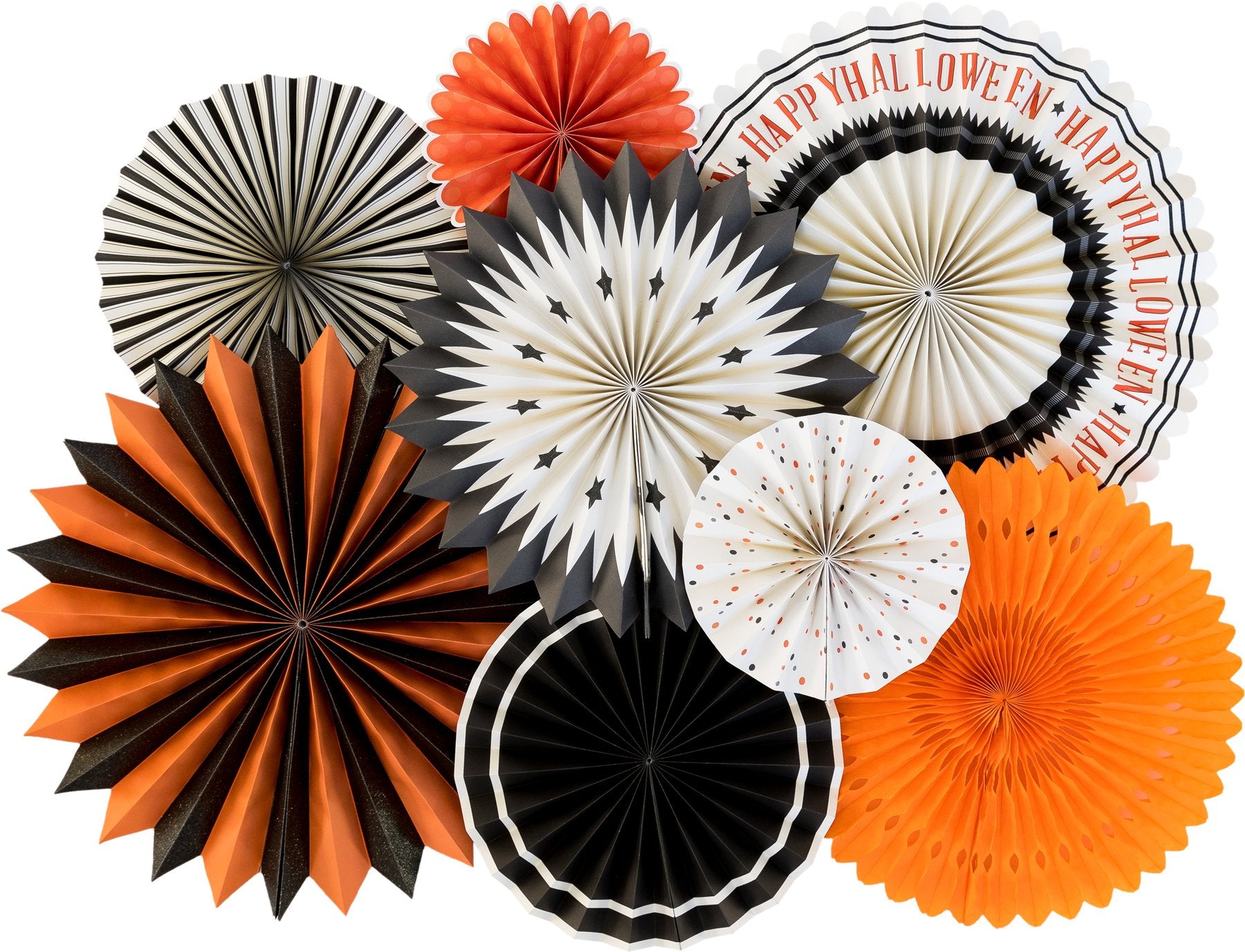 Create a frightful centerpiece for your haunted bash with these vintage inspired whimsical Halloween party fans. These black, white, and orange fans with black glittery details and fun patterns make them the perfect addition to your festive decor.
